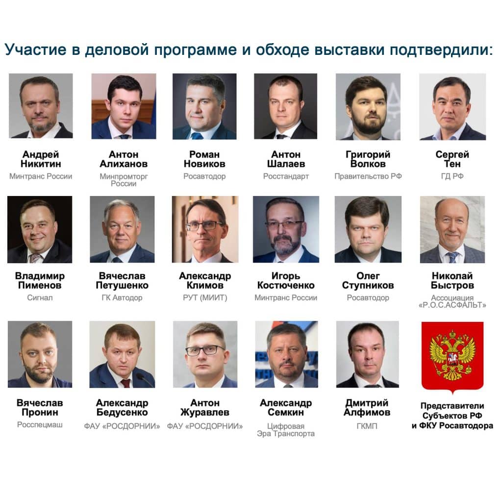 В деловой программе конференции и обходе выставочной экспозиции участие подтвердили Министр транспорта Российской Федерации Андрей Никитин и руководитель Федерального дорожного агентства Роман Новиков.