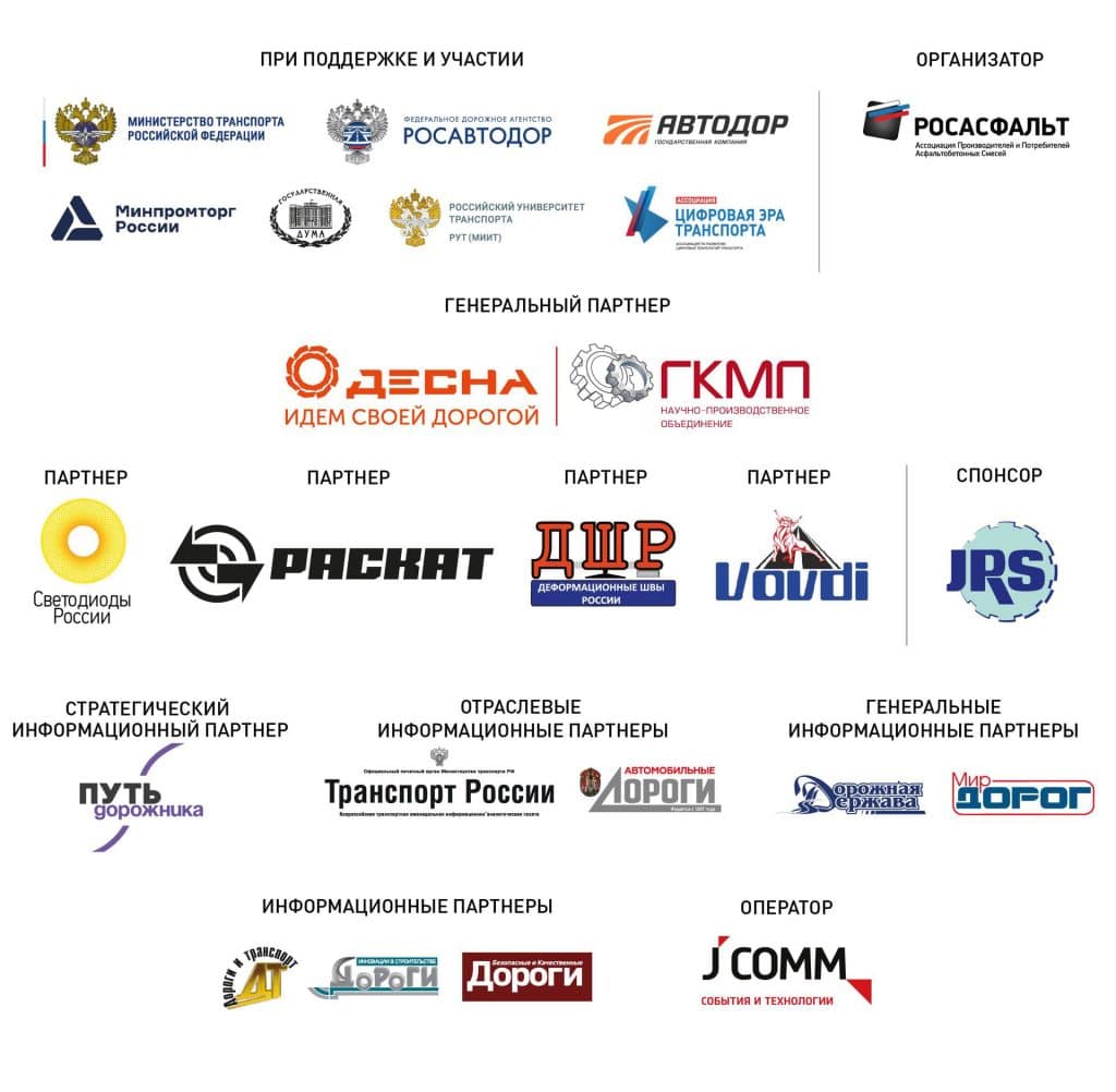 Мероприятие пройдет при поддержке и участии Министерства транспорта Российской Федерации, Федерального дорожного агентства, Минпромторга России, Государственной компании «Автодор», Государственной Думы Российской Федерации, Российского университета транспорта, Ассоциации «Цифровая Эра Транспорта». Организатором выступает Ассоциация «Р.О.С.АСФАЛЬТ».