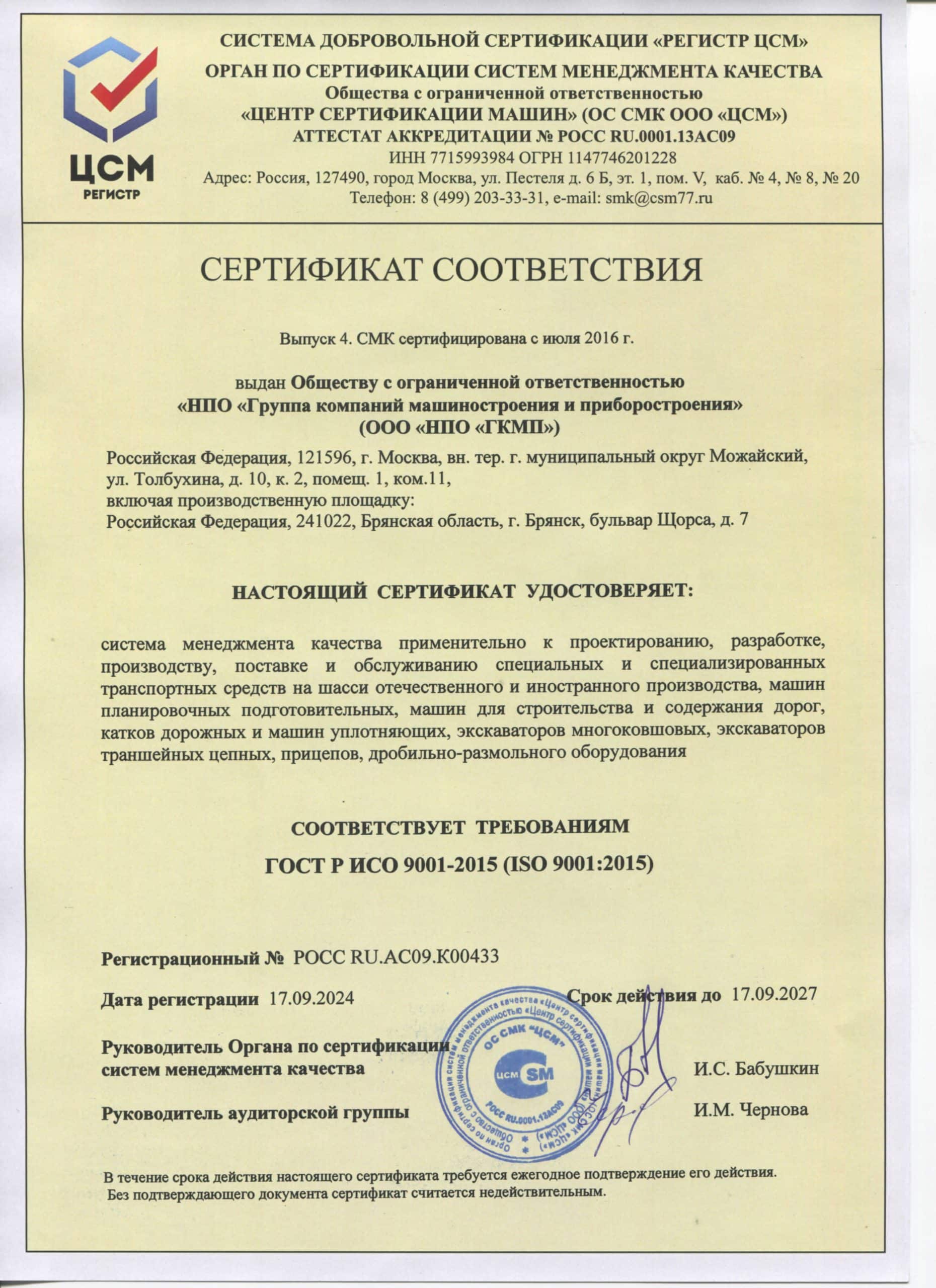 СВИДЕТЕЛЬСТВО WMI и СЕРТИФИКАТ СМК
